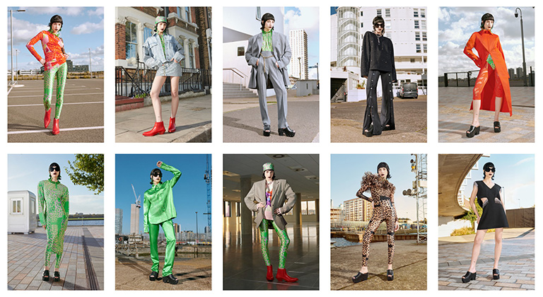 本コレクションは、ニューノーマルな生活を送る一方、FOMO(フォーモ; SNSやインターネット上で取り残されることへの恐れ)に満ちた現代における息抜きとなるよう、爽やかでビビッドな色使いやドラマチックなプリントを特徴的に取り入れています。デザインには1980~90年代の奇抜なファッションを彷彿とさせるディテールが、存在感のあるアクセサリーと融合し、ミックス&マッチを自由に楽しめるドレスアップボックスとなっています。