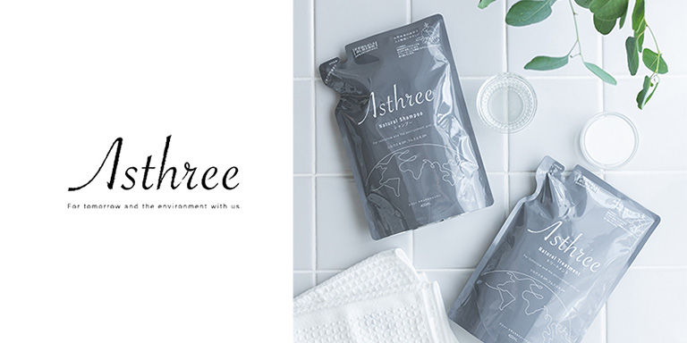 Asthree(アスリー)は、最初からボトルを作らないという完全ボトルレススタイルで、脱プラやそれに伴うCO₂削減、海洋プラスチック問題の改善、新プラ法の推進に貢献しています。「ヒトは自然に生きるもの」という考え方を商品に反映させることで、SDGsや環境問題を考えるきっかけづくりを手助けします。