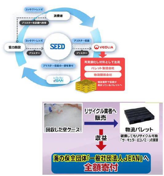 コンタクトの製造販売を手掛ける株式会社シードは、プラスチック製品を大量に使用している企業として持続可能な社会を目指し、環境に配慮した2つの取り組みを行っています。